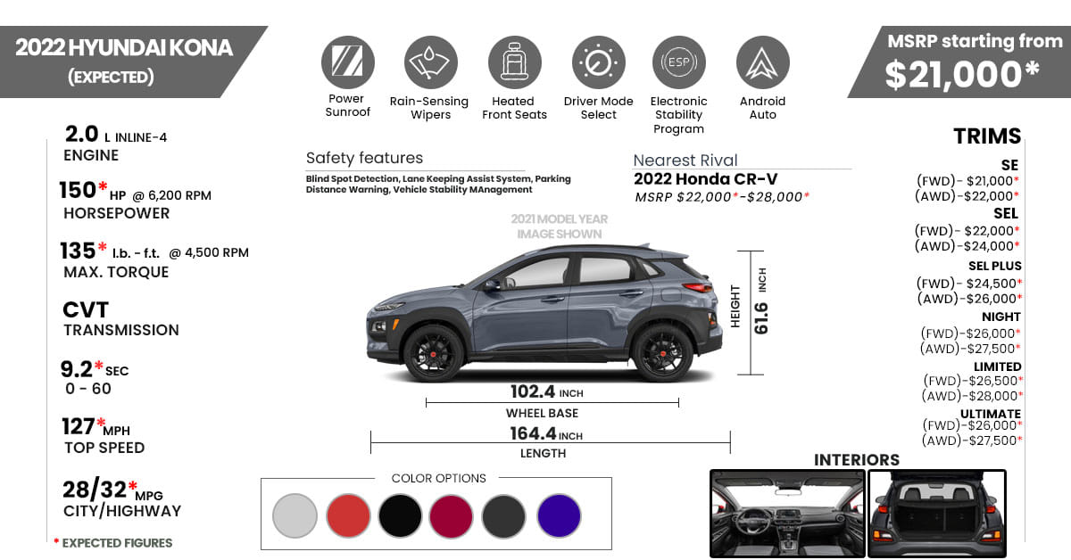 2022 Hyundai Kona Review - 2022 Hyundai Kona Release Date Colors Specs Latest Car Reviews / There is also a new design for the.. The 2022 model year hyundai kona electric in the u.s. The 2022 model year hyundai kona electric in the u.s. Click here for a detailed look at the hyundai kona. The 2022 hyundai kona n is the slightly more mature, sophisticated machine of the two. Get price quotes from local dealers.